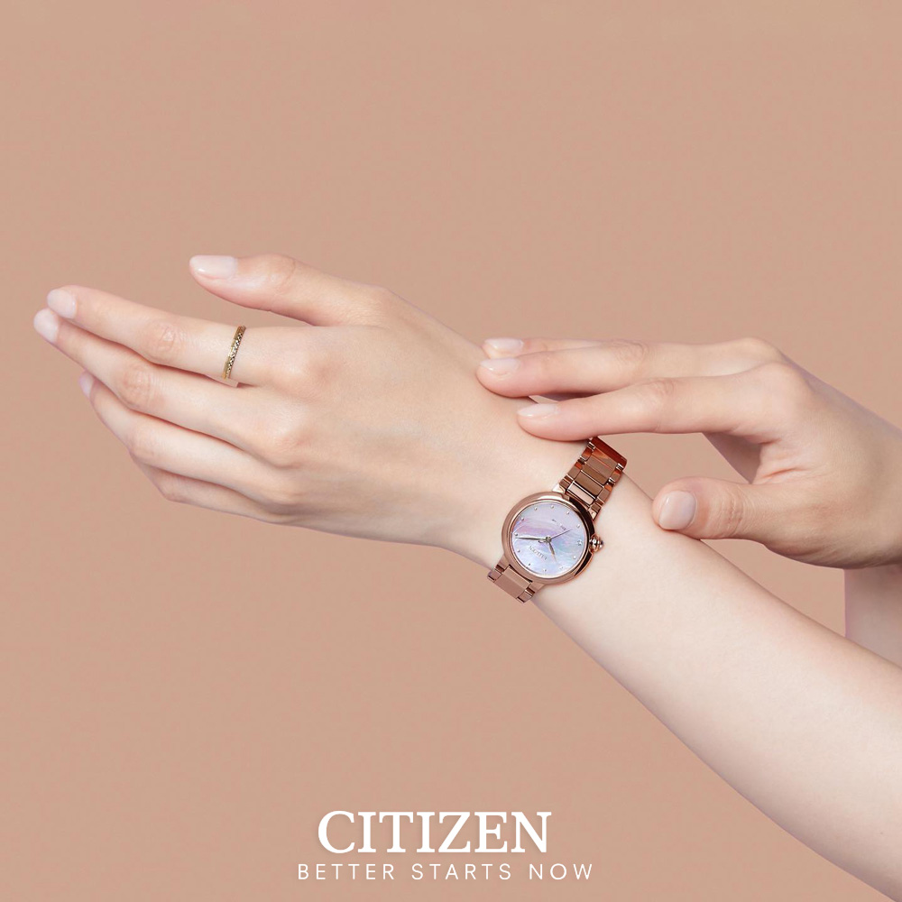 [REVIEW] Tinh tế đơn giản sang trọng với Citizen nữ Eco-drive EM0770-52Y mặt số xà cừ đính kim cương