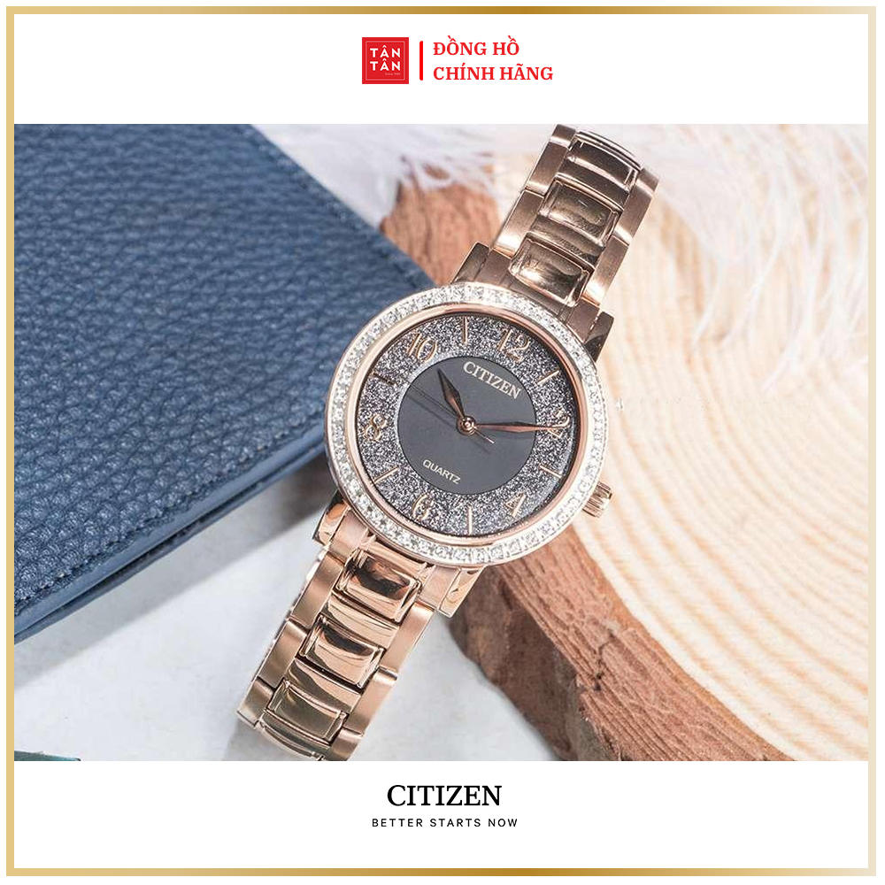 Cận Cảnh Đồng Hồ Citizen Nữ Dây Kim Loại Quartz EL3048-53E