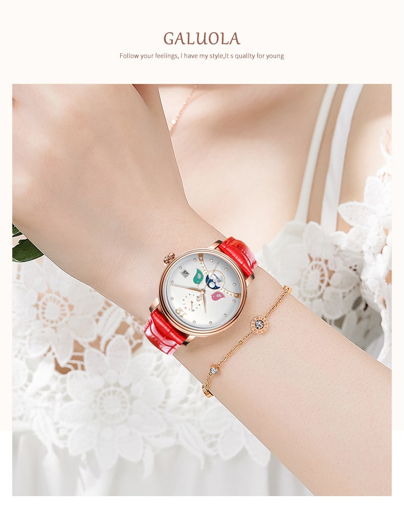 +Chiếc đồng hồ cơ Kassaw Lady Rose chắc chắn sẽ làm hài lòng các cô nàng cá tính, thanh lịch và rất biết "chơi" đồng hồ! +Thiết kế hở tim phá cách kết hợp khéo