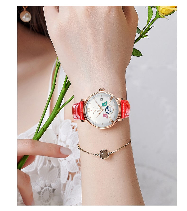Nhãn hiệu LOBINNI Mã sản phẩm No.027-4 Giới tính Nữ Kiểu máy Đồng hồ cơ (Automatic) Đường kính mặt 36 mm Độ dày 10 mm Chất liệu vỏ Thép không gỉ 316L Chất liệu dây Dây da cao cấp Chất liệu mặt kính Sapphire