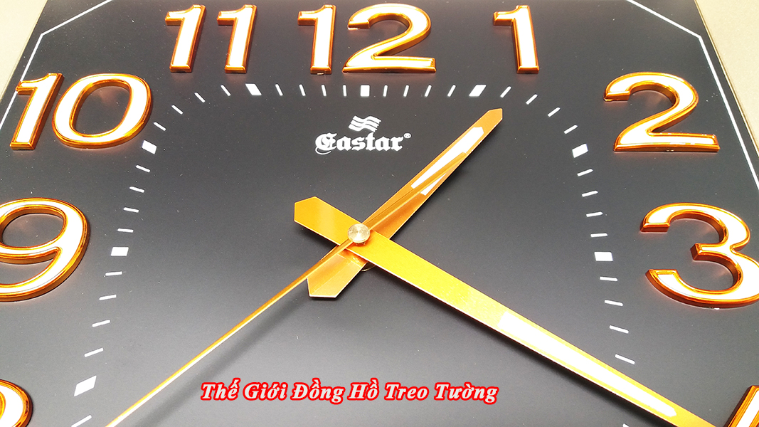 Đồng hồ Treo Tường KIM TRÔI DẠ QUANG EASTAR Mặt ĐEN Kim VÀNG - Số nổi 3D - 885B