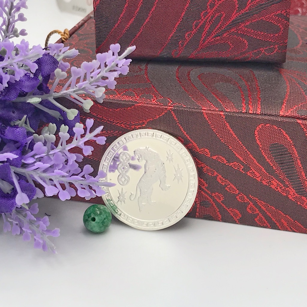 Bộ 5 đồng tiền đá cẩm thạch tự nhiên xanh ngọc đậm đều đẹp Nữ Phối vòng tay,mặt dây chuyền vàng đeo cực kỳ xinh xắn ạ Size hạt 9mm x dầy 3,8mm x lỗ