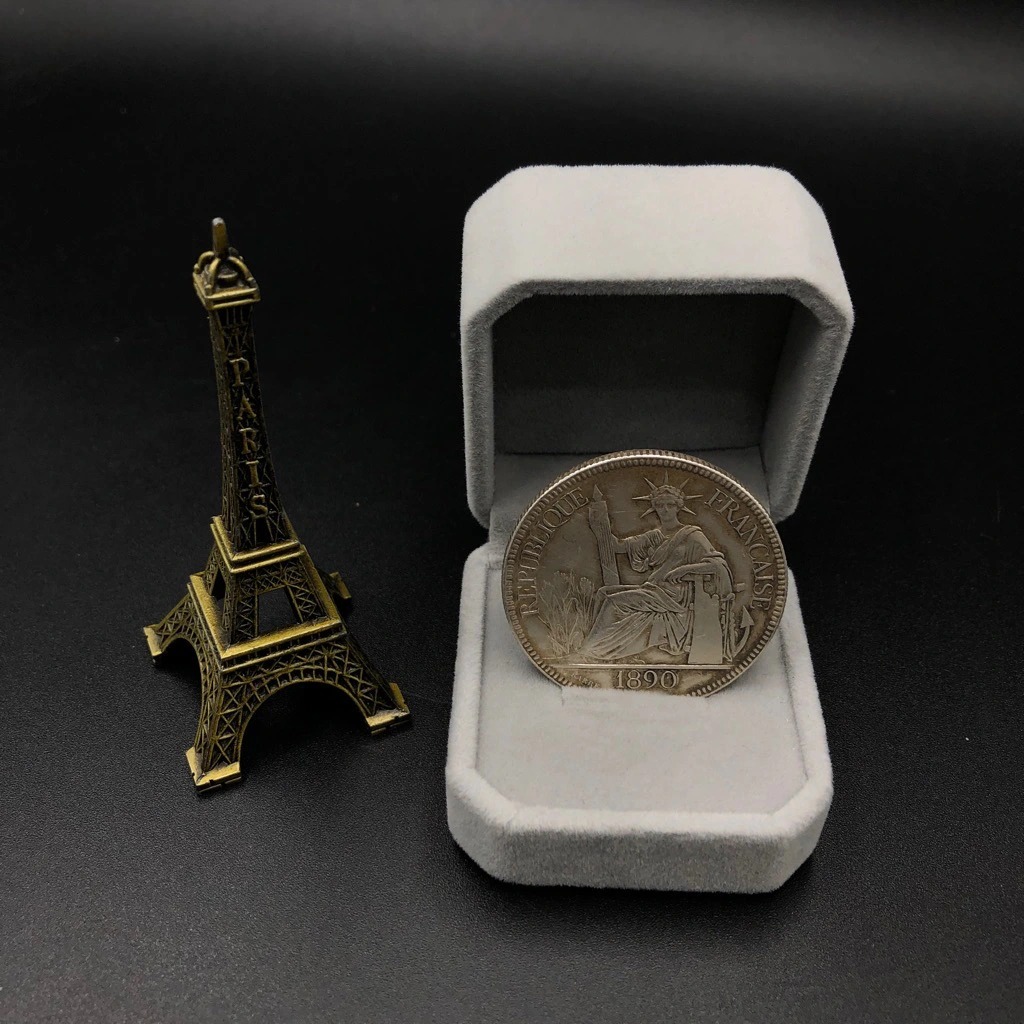 Đồng Xu Hoa Xòe Đánh Gió Đông Dương Hình Bà Đầm Cũ Bạc Ta 50 Cent BẠC HIỂU MINH DDD002C