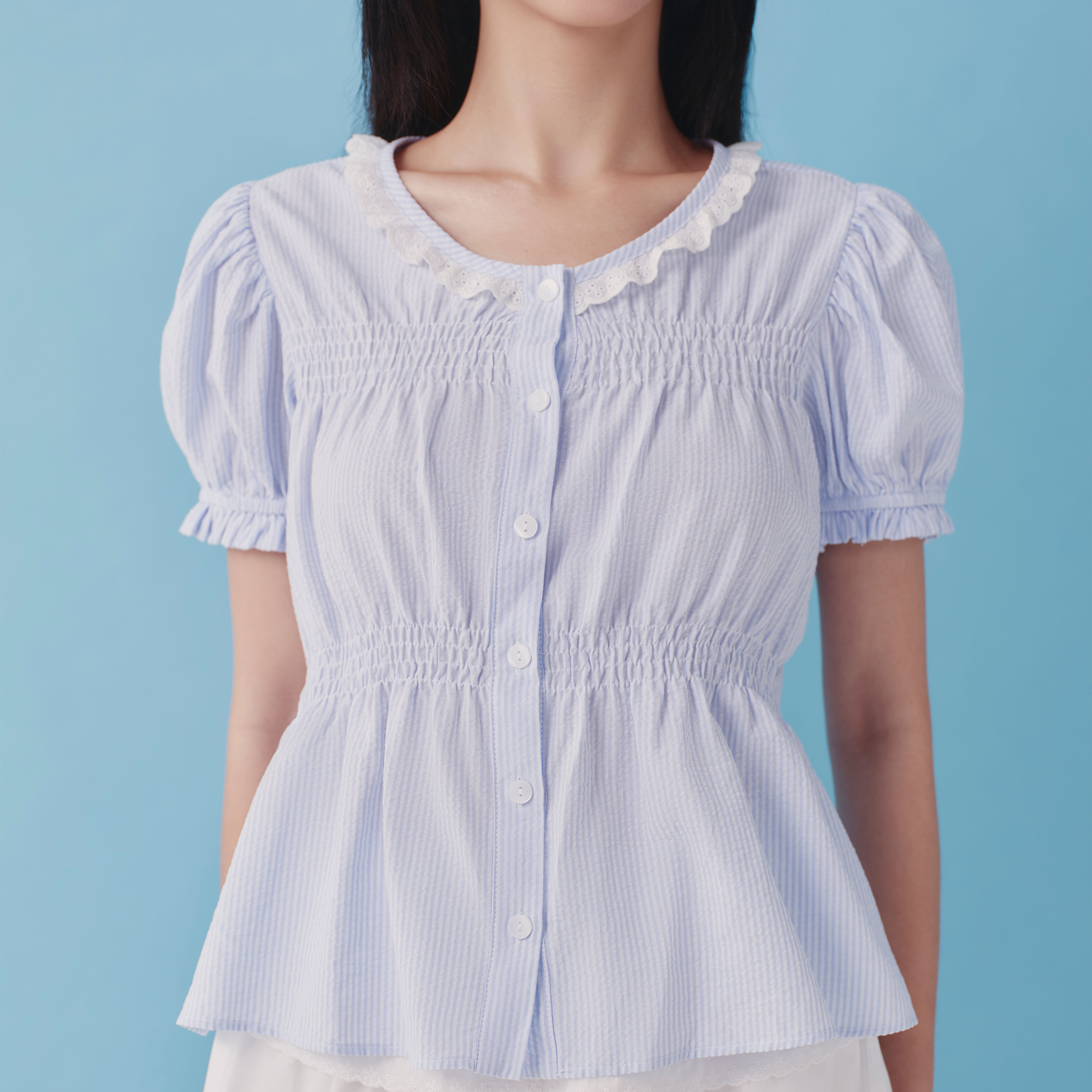 --------------- CHI TIẾT SẢN PHẨM ✿ Sản phẩm : Áo sơ mi nữ tay ngắn trắng sọc nhỏ cổ bẻ dáng ôm nhẹ Kira Miều Est.2013 ✿ Chất liệu : Cotton Sọc ✿ Màu sắc