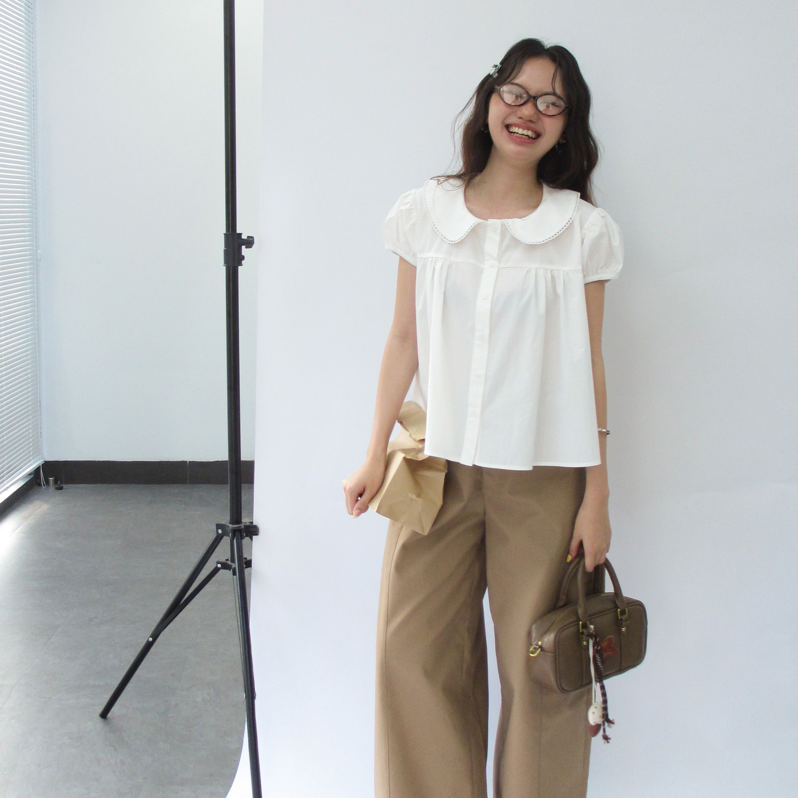 ✨DOTTIE - Áo tay phồng cổ lá sen - Trắng - T1117