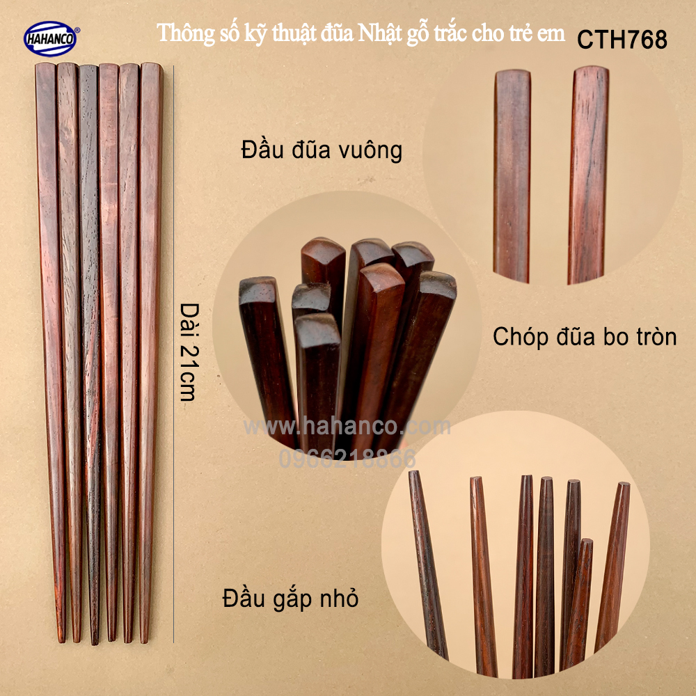 Lưu ý: Hiện nay hàng giả gỗ trắc rất nhiều, hàng giả thường được làm bằng gỗ tạp và ngâm hóa chất nhuộm màu rất độc hại. Để đảm bảo quyền lợi hãy chọn mua đúng đũa gỗ tự nhiên do Công Ty HAHANCO sản xuất.