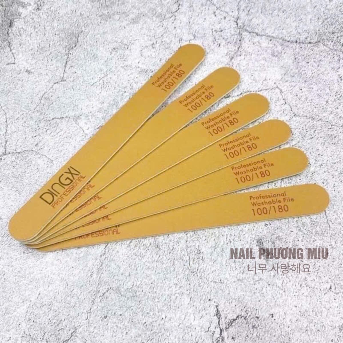 Dũa Mỏng DINGXI Lốc 50 Cái Độ Nhám 100/180 Màu Nâu Vàng Da Bò Làm Nail Tiện Lợi, Form Thẳng Không Chạm Khóe Móng, Lõi Nhựa Cứng Cáp, Cầm Chắc Tay, 2 Mặt Nhám Cao Cấp Dũa Êm