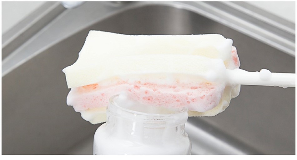 - Công dụng: Dụng cụ cọ rửa bình sữa với đầu mút cao cấp, mềm mại và an toàn không gây xước bình. Chất liệu mút mềm giúp làm sạch nhẹ nhàng các vật dụng như cốc chai, lọ, bình mà không gây trầy xướ rất tiện sử dụng cho cả gia đình. HDSD :