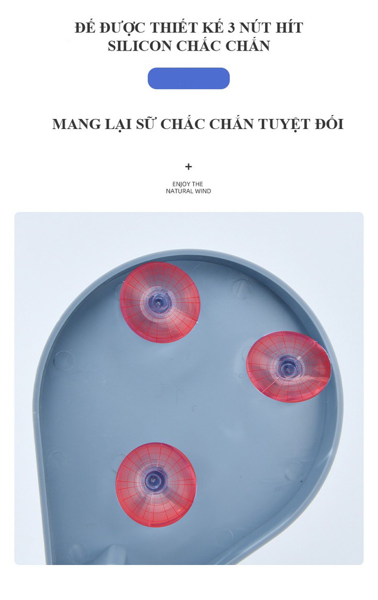 Dưới phần đế có thiết kế 3 nút hít giúp bạn cố định phần đế, cuối phần giá có thiết kế hình chữ V để nước trải xuống tránh đọng nước lại, giúp xà phòng khô thoáng.