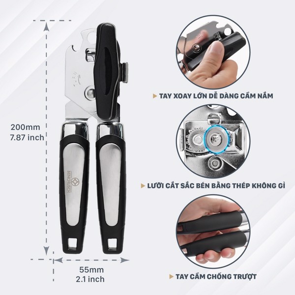 Bên cạnh đó, sản phẩm còn tích hợp chức năng khui nắp chai/lon tiện dụng giúp bạn ‘chinh phục’ tất cả các loại nắp hộp/lon/chai một cách dễ dàng.
