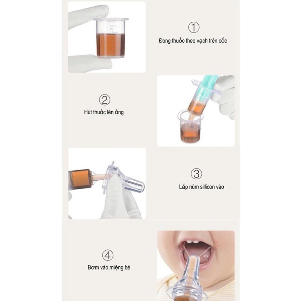 Được thiết kế với cấu tạo giống hệt chiếc xi lanh. Vì thế, mẹ dễ dàng đẩy thuôc vào trong miệng cho bé.