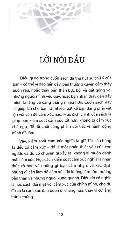 "Cuộc đời cho bạn vô vàn lý do để nổi giận, buồn bã, sợ hãi, thất vọng – và những cảm xúc này là bình thường. Nhưng đôi khi, bạn cảm thấy như cảm xúc đang giành lấy quyền điều khiển, vượt khỏi tầm kiểm soát của m.ình, như thể cảm xúc có trí óc riêng vậy. Những cảm xúc choáng ngợp này còn khiến cho tình hình tồi tệ hơn khi can thiệp vào chuyện học hành ở trường, phá hoại mối quan hệ, và ngăn không cho bạn tận hưởng cuộc sống vui vẻ, hạnh phúc.