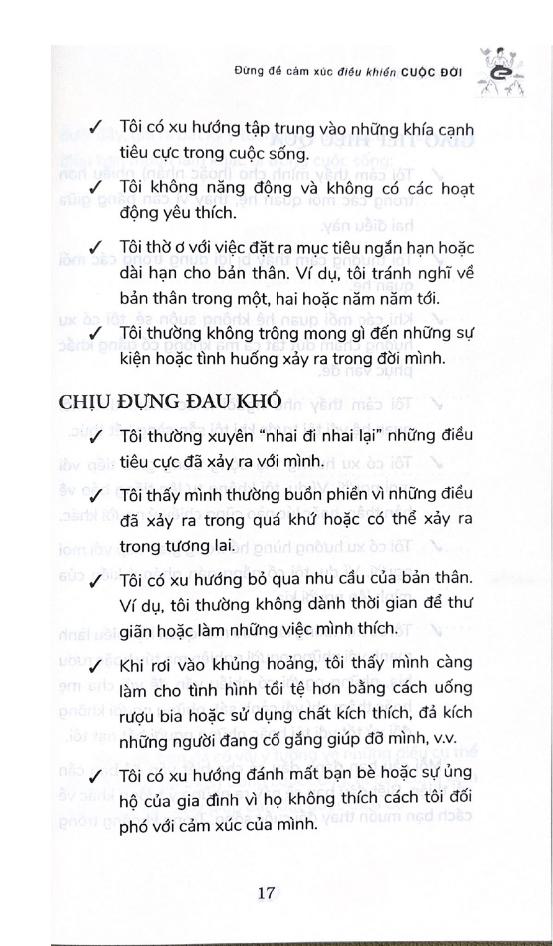 Đừng Để Cảm Xúc Điều Khiển Cuộc Đời là sách bài tập hỗ trợ các bạn trẻ tuổi teen khi rơi vào tình huống này. Bạn đọc sẽ tìm thấy trong sách những cách kiểm soát cảm xúc, giúp bạn sẵn sàng đương đầu với mọi “quả chanh” cuộc đời ném vào m.ình. Dựa trên liệu pháp hành vi biện chứng, một phương pháp trị liệu được thiết kế nhằm hỗ trợ những người gặp khó khăn trong việc xử lý những cảm xúc mãnh liệt, sách sẽ hướng dẫn bạn các kỹ năng cần thiết để vượt qua những thăng trầm trong đời với sự tự tin và duyên dáng.