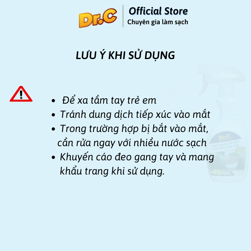 Dr.C là thương hiệu hàng đầu phân phối các sản phẩm về Làm sạch, Vệ sinh như vệ sinh nhà bếp, nhà tắm, cửa kính, sàn nhà, tẩy dầu mỡ và những vết bẩn cứng