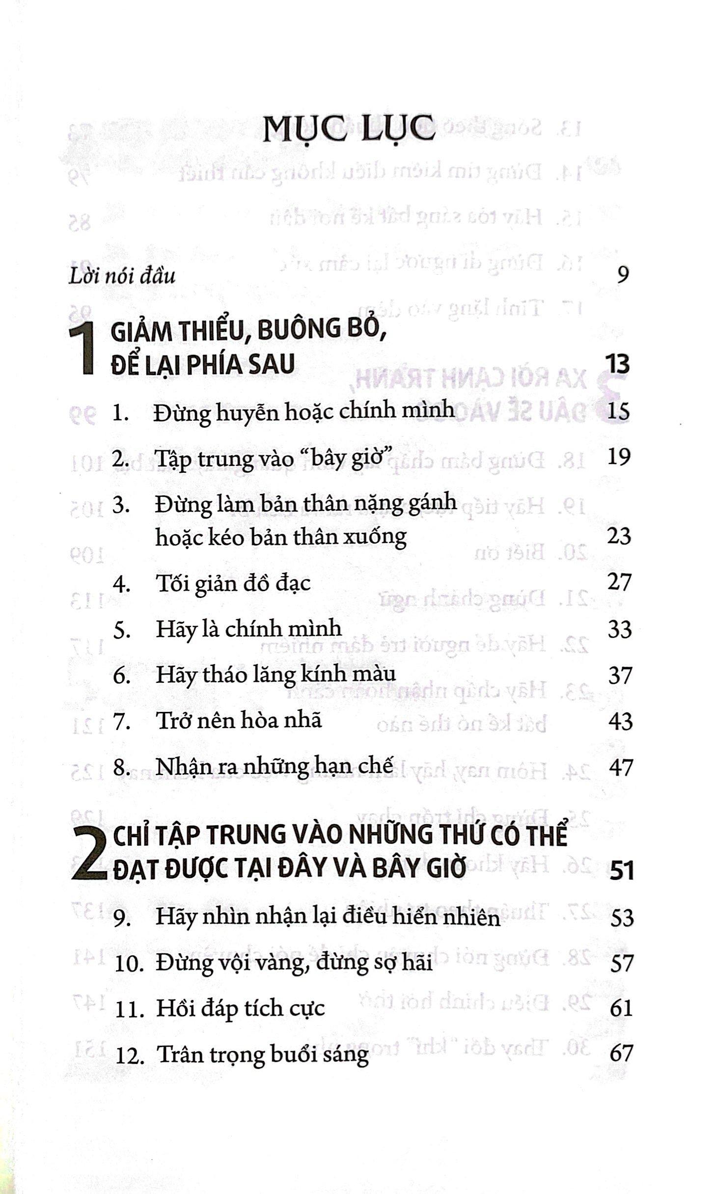 Ta lo lắng về một điều gì đó, nhưng rồi chợt nhận ra nó thật chẳng đáng lo đến vậy. Thật ra, 90% nỗi lo lắng của ta sẽ không thành hiện thực. Ta bỗng thấy nhẹ nhõm biết bao. Bí quyết ở đây là chỉ tập trung vào hiện tại và nơi này, như thế, ta có thể giải phóng m.ình khỏi những lo lắng không cần thiết, để tâm trí ta được bình yên. Thông qua cuốn sách này, SHUNMYO MASUNO sẽ cho ta biết tại sao.