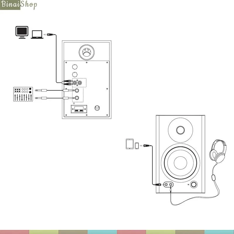 - Với giắc cắm đầu vào cân bằng TRS 6,35mm, MR4 Studio Monitor có thể kết nối với bảng điều khiển, bộ trộn và các thiết bị chuyên nghiệp khác với độ nhạy đầu vào +4dBu. Ngoài ra, còn có hai đầu vào RCA/AUX không cân bằng và đầu ra tai nghe phía trước, giúp kết nối đồng thời thuận tiện với các thiết bị khác nhau.
