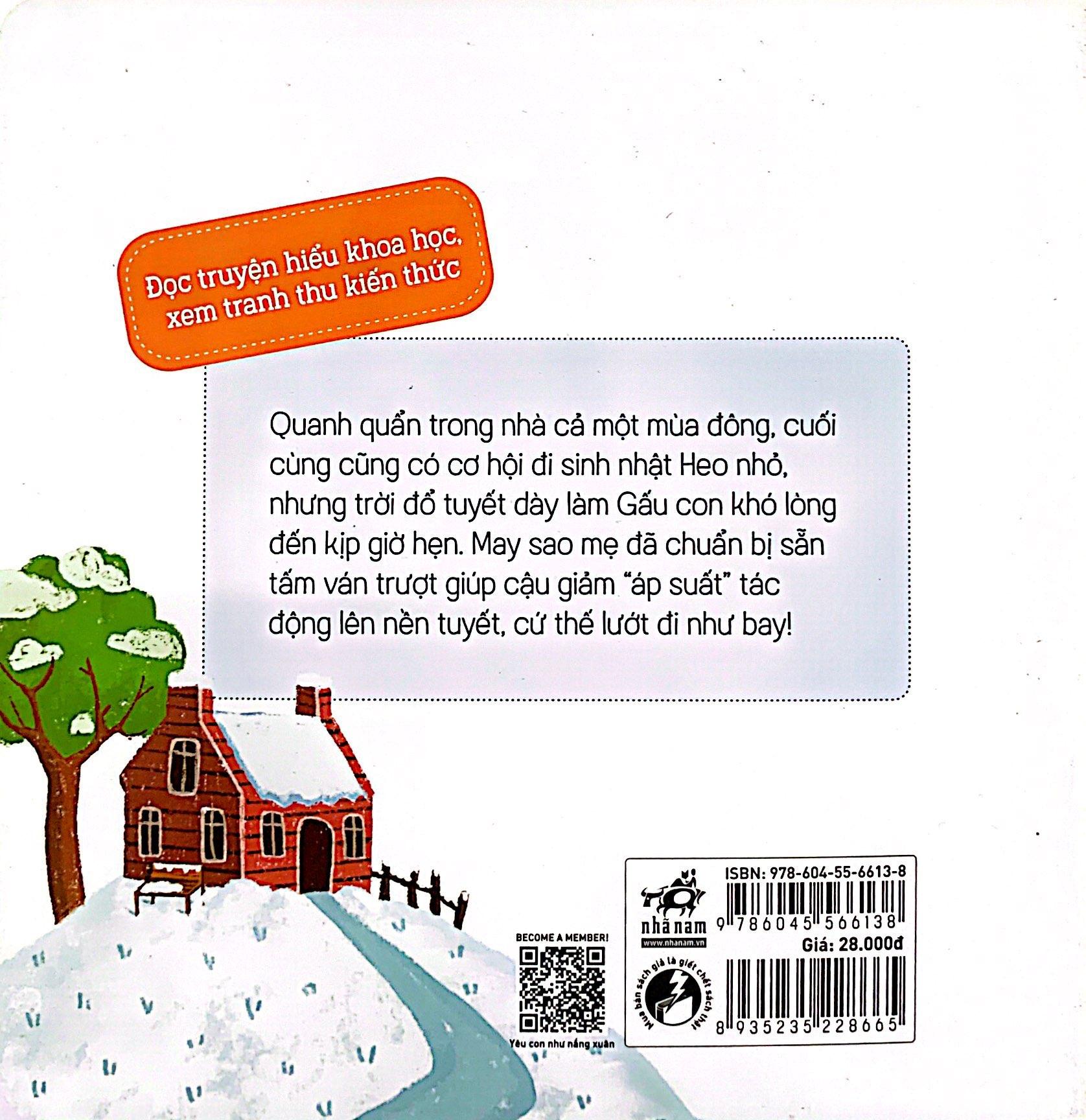 Quanh quẩn trong nhà cả một mùa đông, cuối cùng cũng có cơ hội đi sinh nhật Heo nhỏ, nhưng trời đổ tuyết dày làm Gấu con khó lòng đến kịp giờ hẹn. May sao mẹ đã chuẩn bị sẵn tấm ván trượt giúp cậu giảm “áp suất” tác động lên nền tuyết, cứ thế lướt đi như bay!
