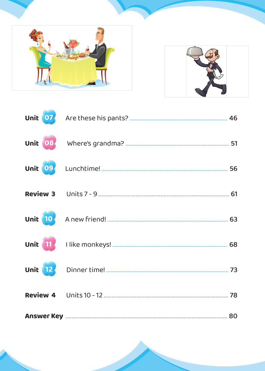 • Các em được học từ vựng theo chủ đề qua hình ảnh sinh động, làm quen ngữ pháp qua bài đọc và các cấu trúc câu. • Các phần lý thuyết và bài tập vận dụng đưa các em tiếp cận đầy đủ các kỹ năng: nghe, nói, đọc, viết, từ đó tạo dựng nền tảng tiếng Anh vững chắc.