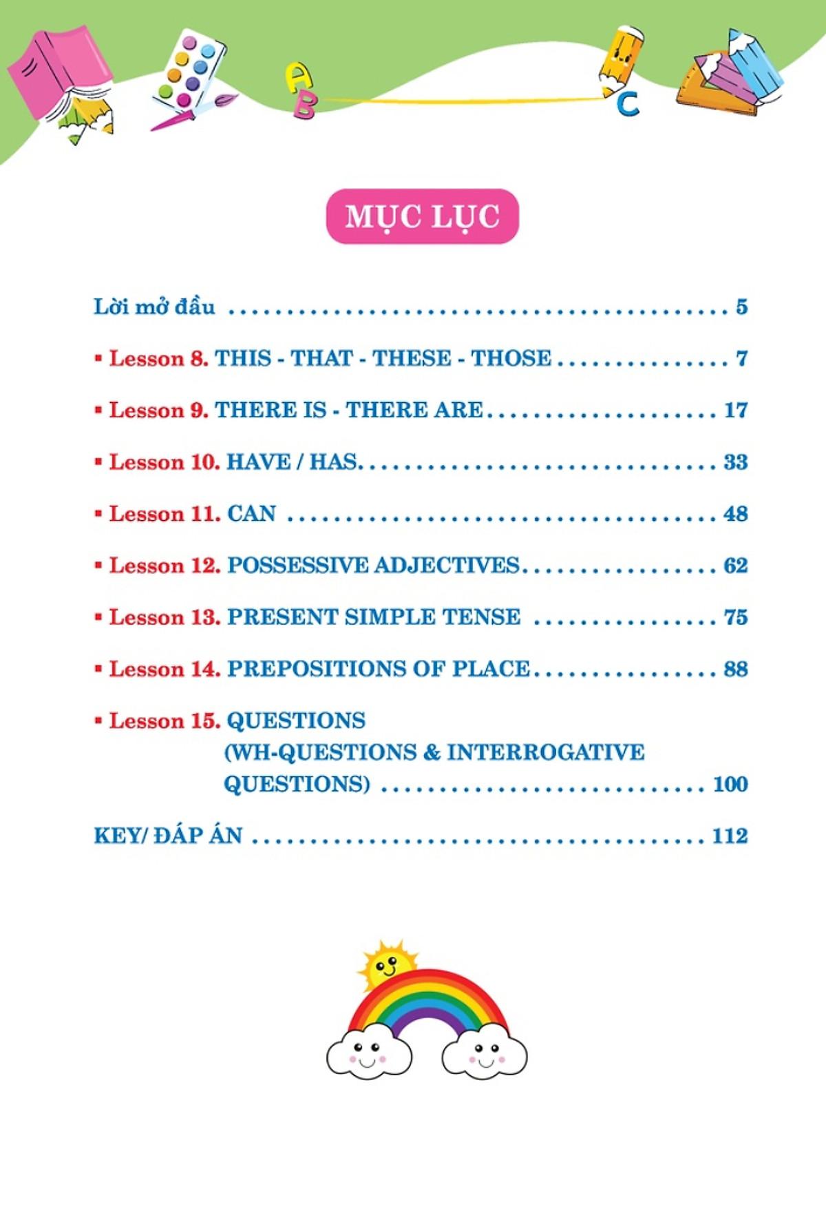 Bộ sách “English Grammar” được các tác giả biên soạn gồm các cấp độ từ cơ bản đến nâng cao, phù hợp với học sinh từ 6-15 tuổi. Đây là cuốn sách ngữ pháp chuyên sâu giúp cha mẹ đồng hành cùng các con chinh phục các chứng chỉ quốc tế.