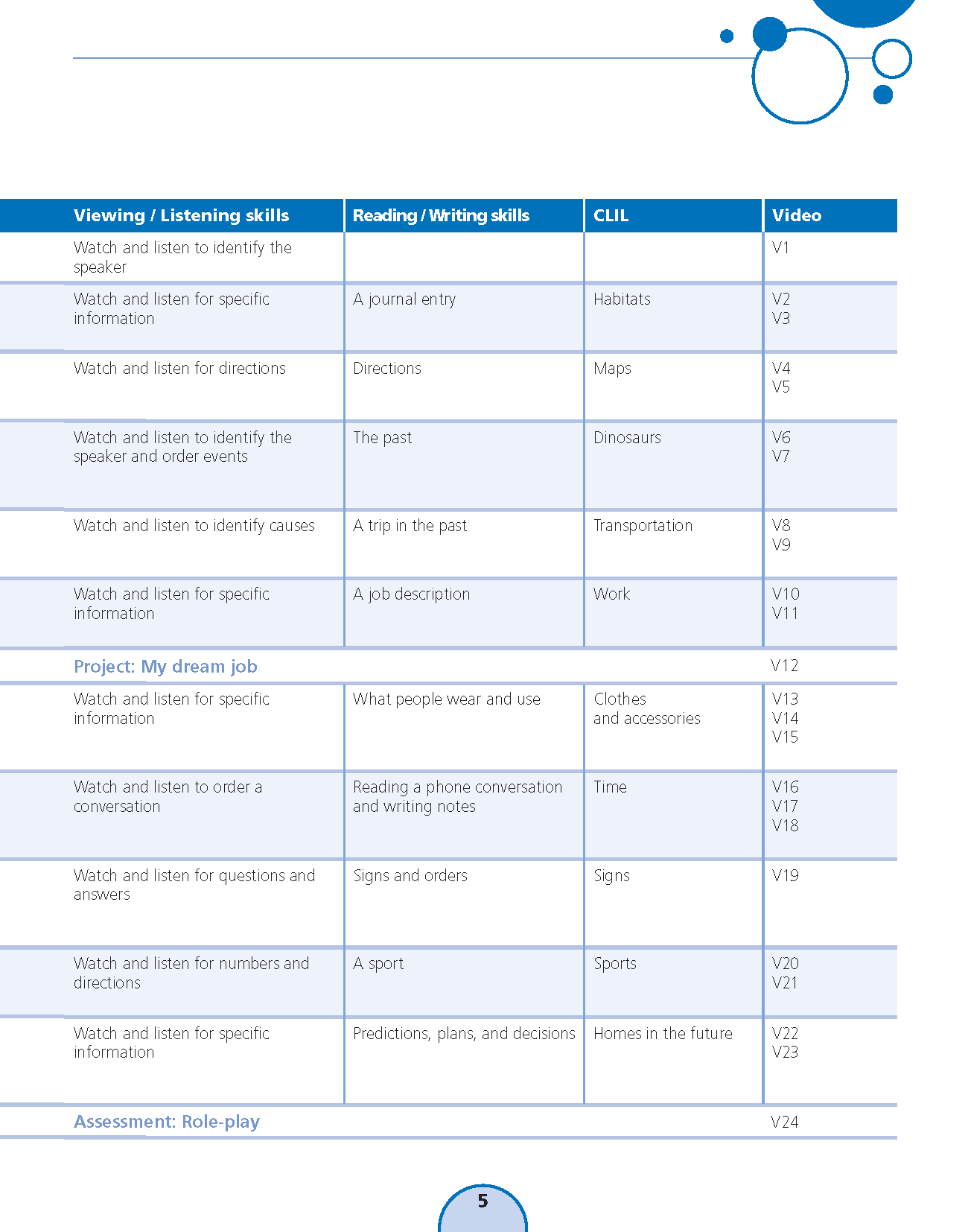 Sách: Learning English 5 - Dành Cho Học Sinh Lớp 5 NỘI DUNG VÀ CẤU TRÚC CỦA QUYỂN SÁCH : Bảng mục lục: Chỉ rõ các mục tiêu chính và trọng tâm của mỗi bài