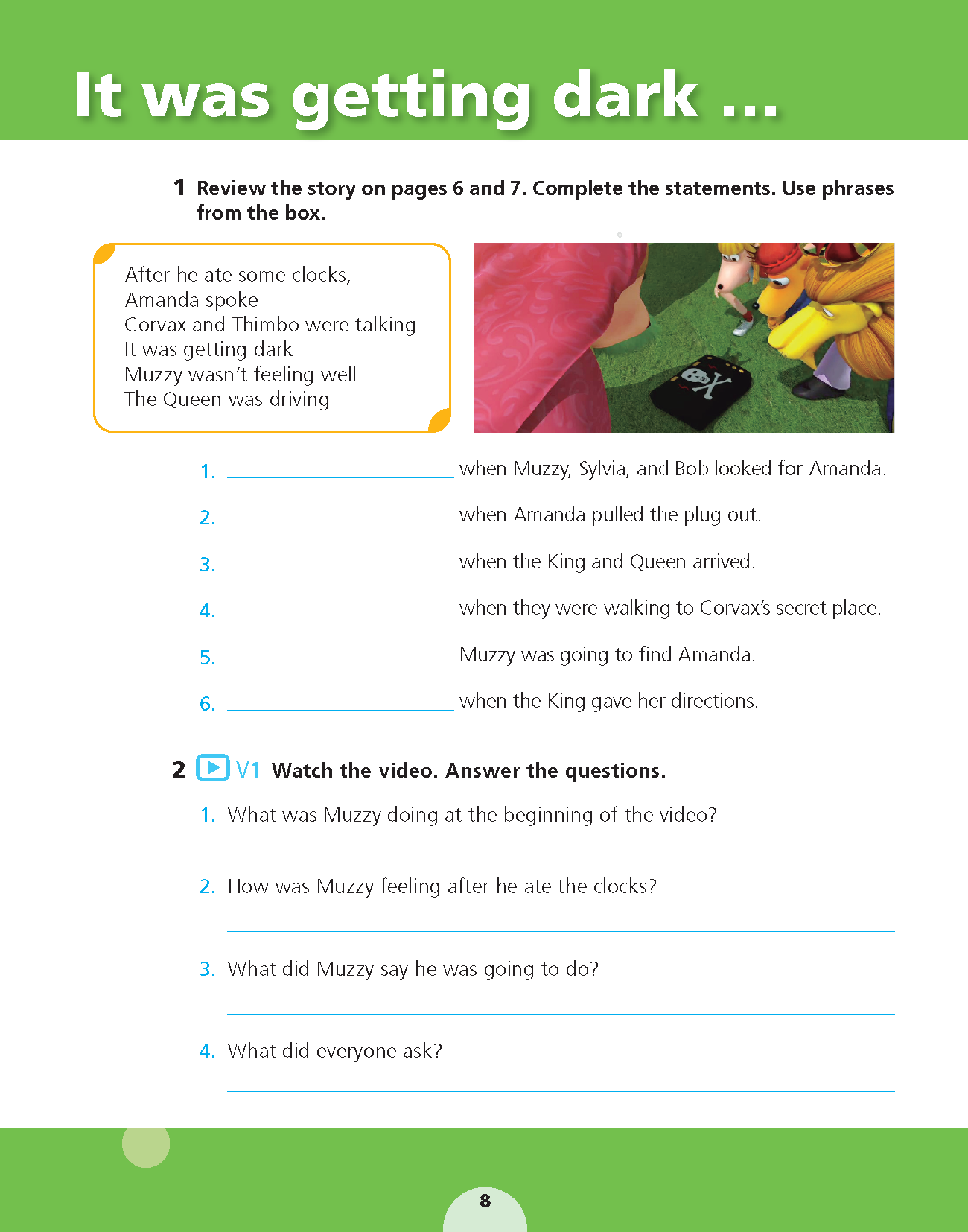 Những cuốn sách giáo khoa này sử dụng các video và cốt truyện gốc của Muzzy làm nền tảng để xây dựng các kỹ năng ngôn ngữ cơ bản và phát triển từ vựng, ngữ pháp, phát âm và sự trôi chảy ở trẻ học tiếng Anh như một ngoại ngữ.