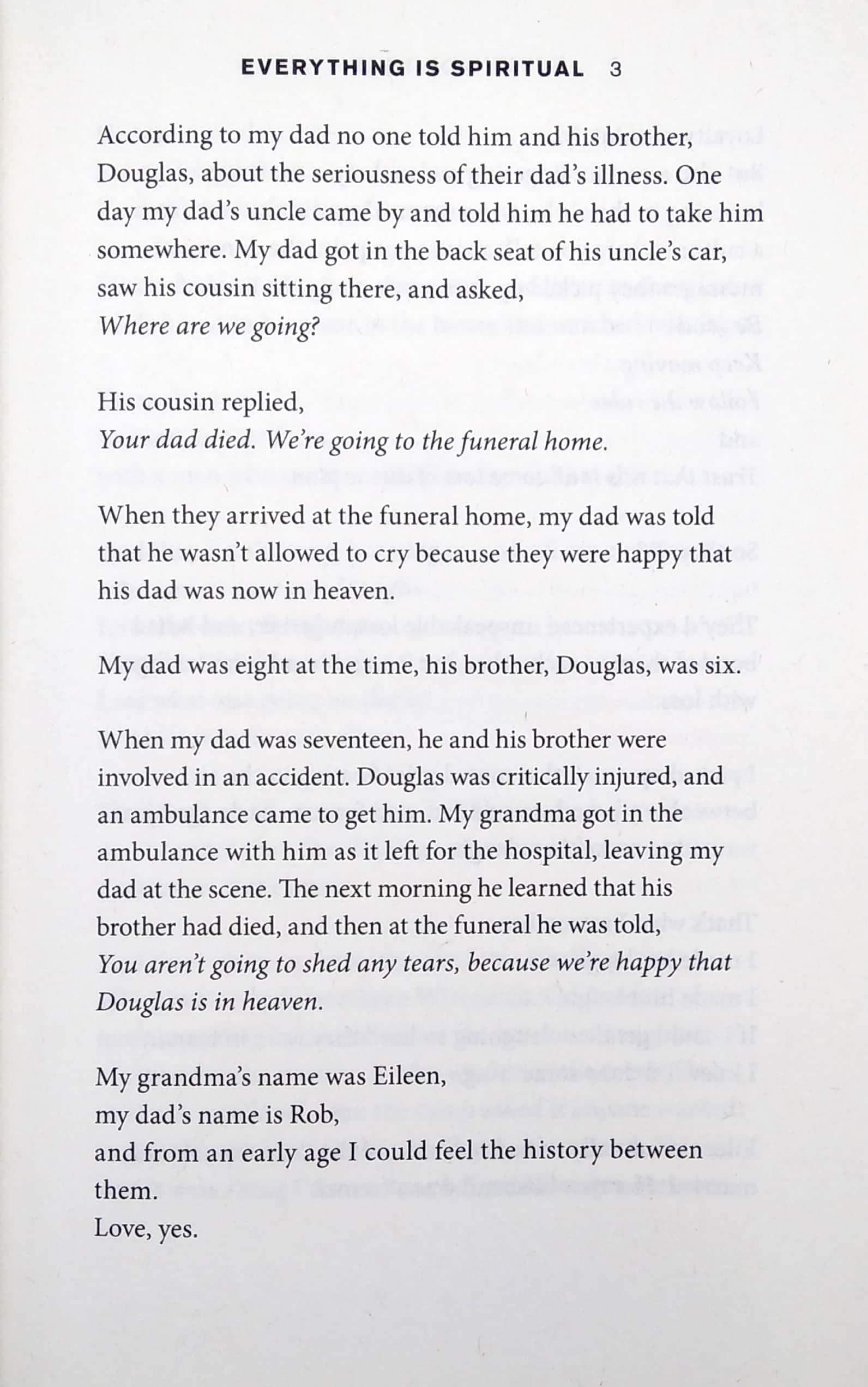 Part memoir, part confession, part extended riff on the endlessly evolving nature of reality, Everything Is Spiritual is an invitation to see what you've been a part of this whole time.