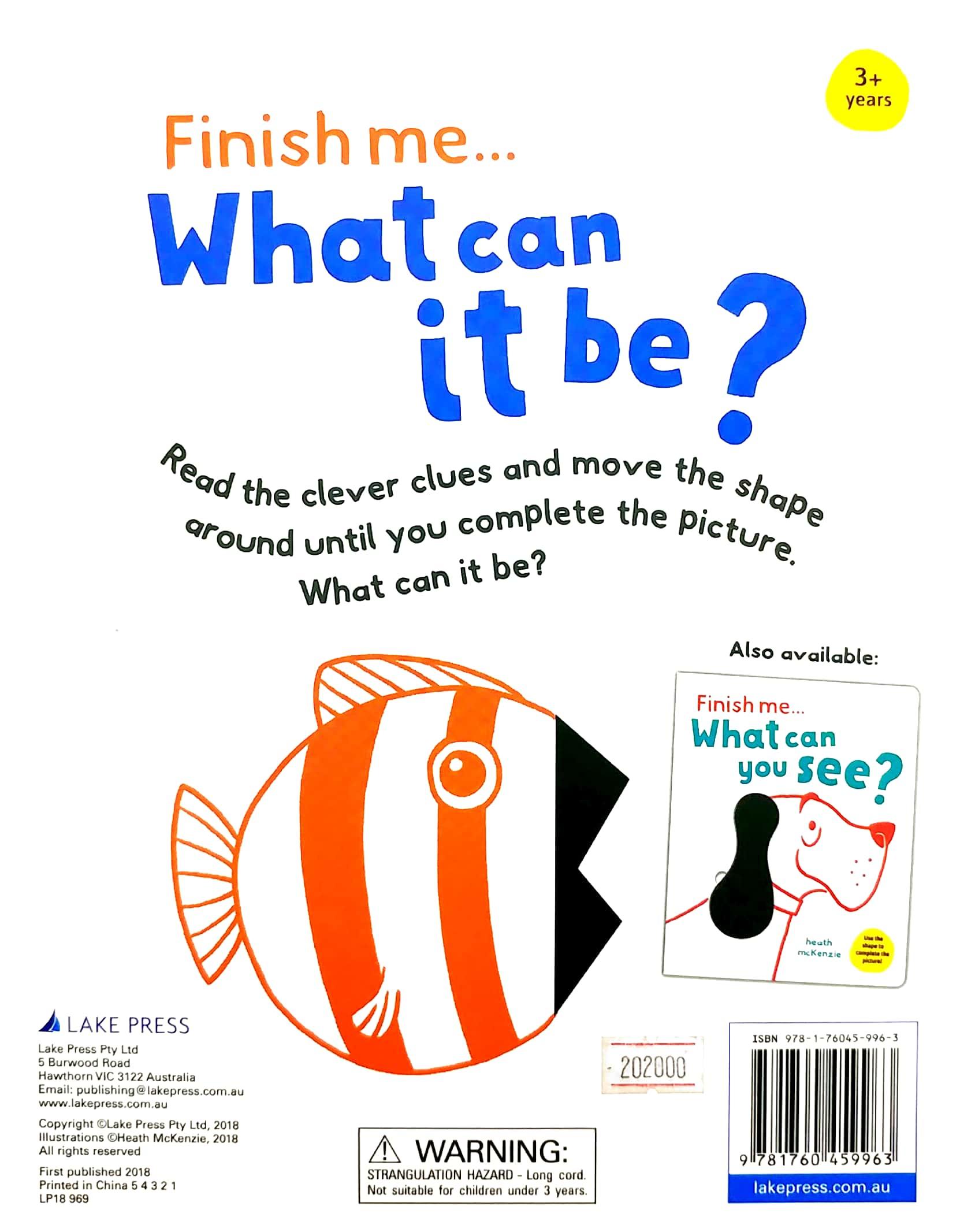 This clever book comes with a shape attached to a ribbon, for manoeuvring around! Read the clues and move the shape around until you complete the picture.What can it be, what can you see?
