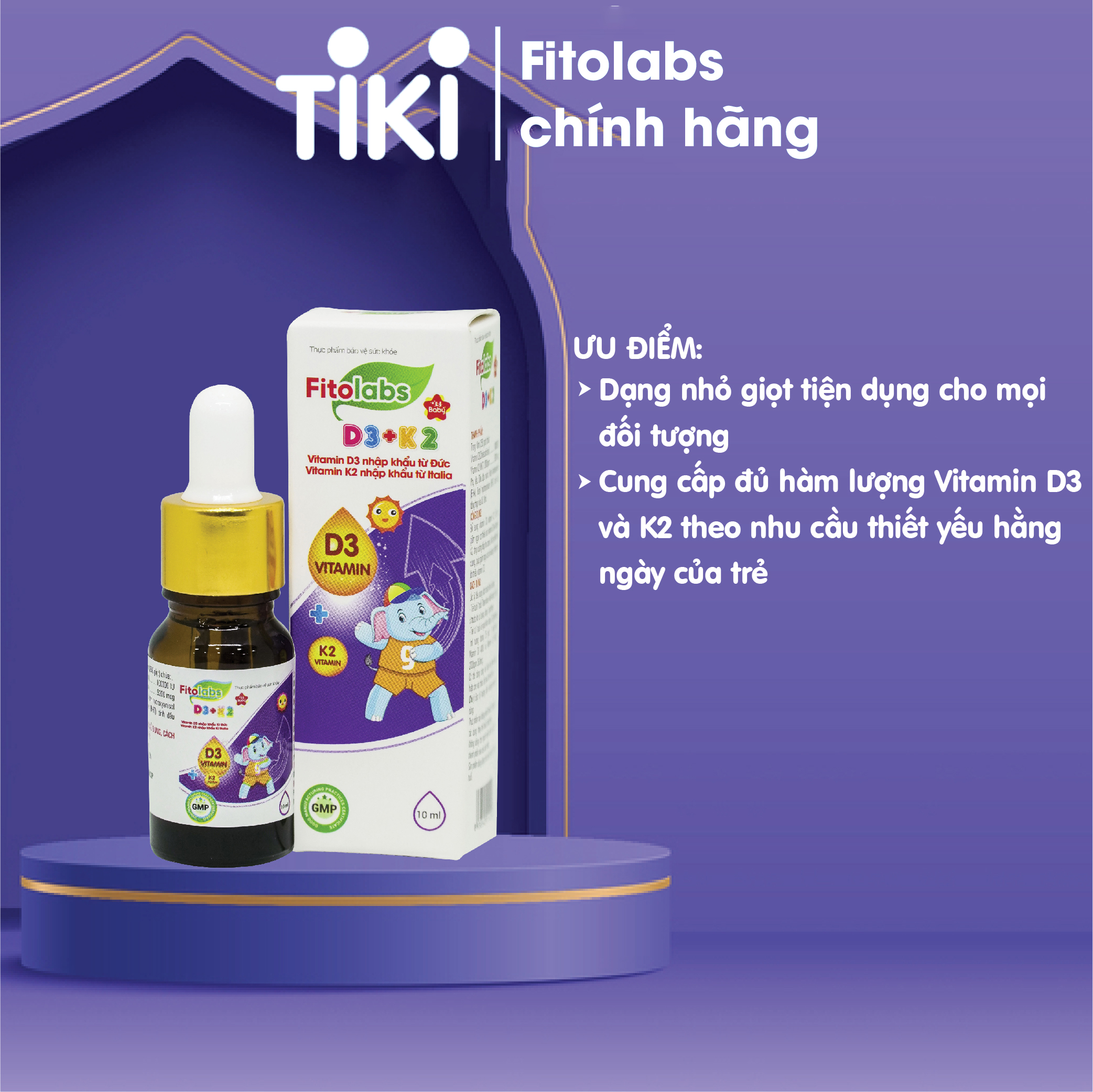 - FITOLABS D3 + K2 chứa bộ đôi vitamin D3 và K2 với những ưu điểm nổi trội: