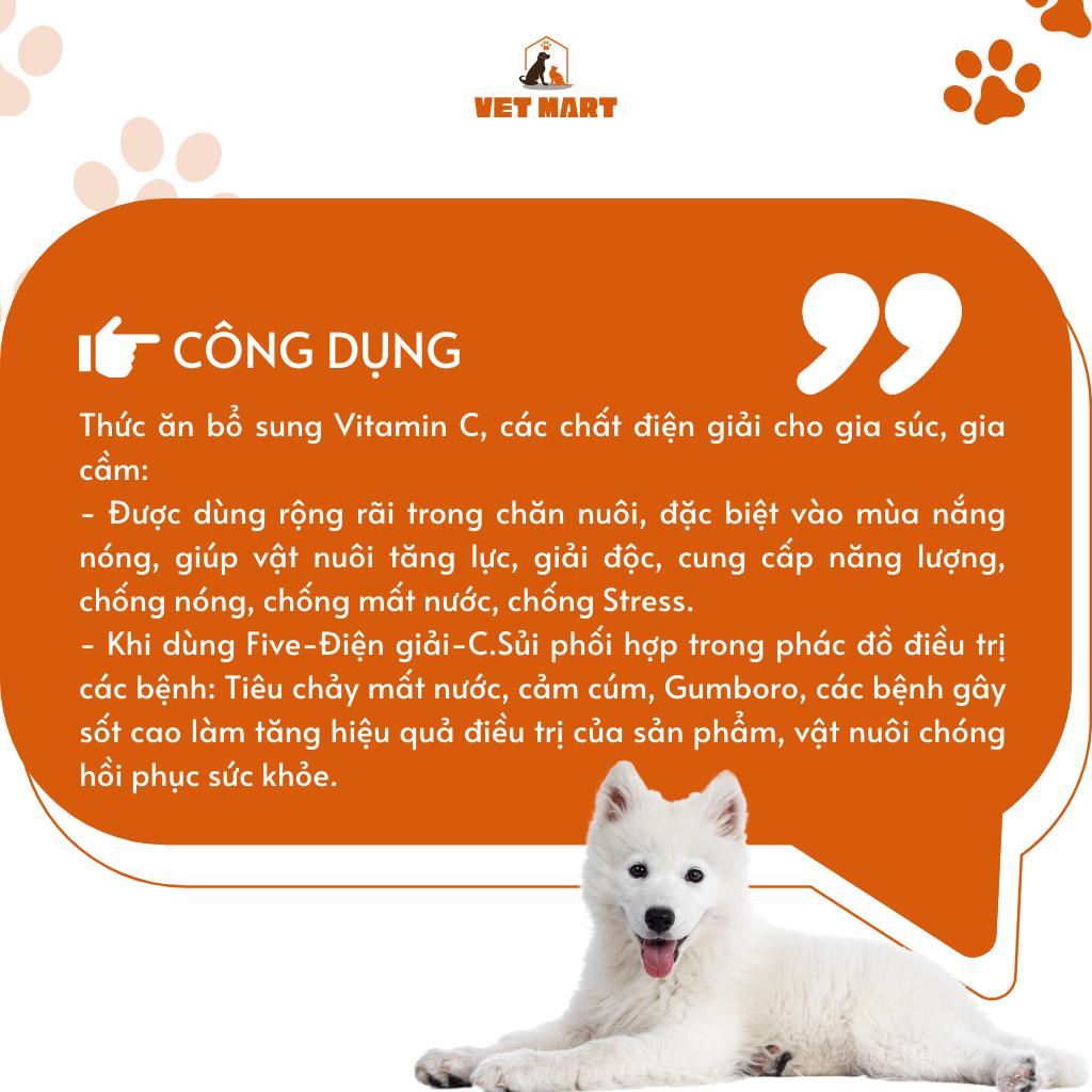 ✨Five Điện giải C sủi - Dung Dịch Giải Nhiệt, Bù Nước, Chống nóng, tăng lực phục hồi cho Gia Súc, Gia cầm, chó mèo 1KG