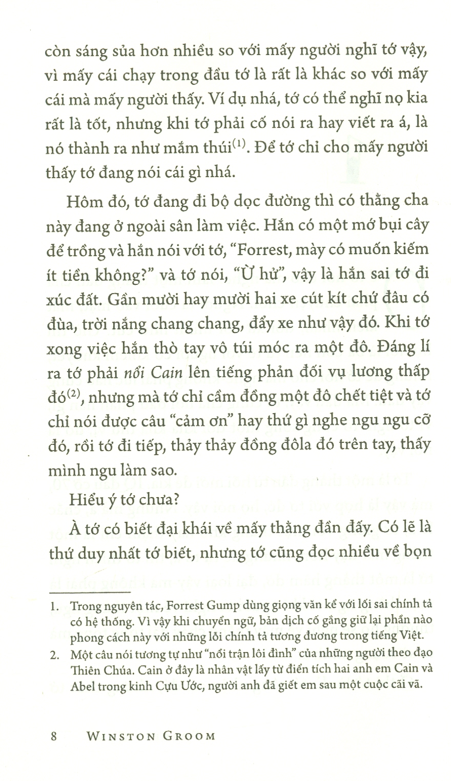 Winston Groom là một cựu binh thời chiến tranh ở Việt Nam, sau khi trở về, ông làm phóng viên và chuyển sang viết tiểu thuyết năm 32 tuổi và đã gặt hái được nhiều thành công. Cuốn sách Conversations with the Enemy (1982) [Trò chuyện với kẻ thù] với chủ đề cựu chiến binh Chiến tranh Việt Nam đã lọt vào chung kết giải Pulitzer năm 1984. Năm 1985, Groom quay về Mobile và bắt đầu viết Forrest Gump. Cuốn sách đã trở thành dấu mốc cho sự nghiệp sáng tác của ông.