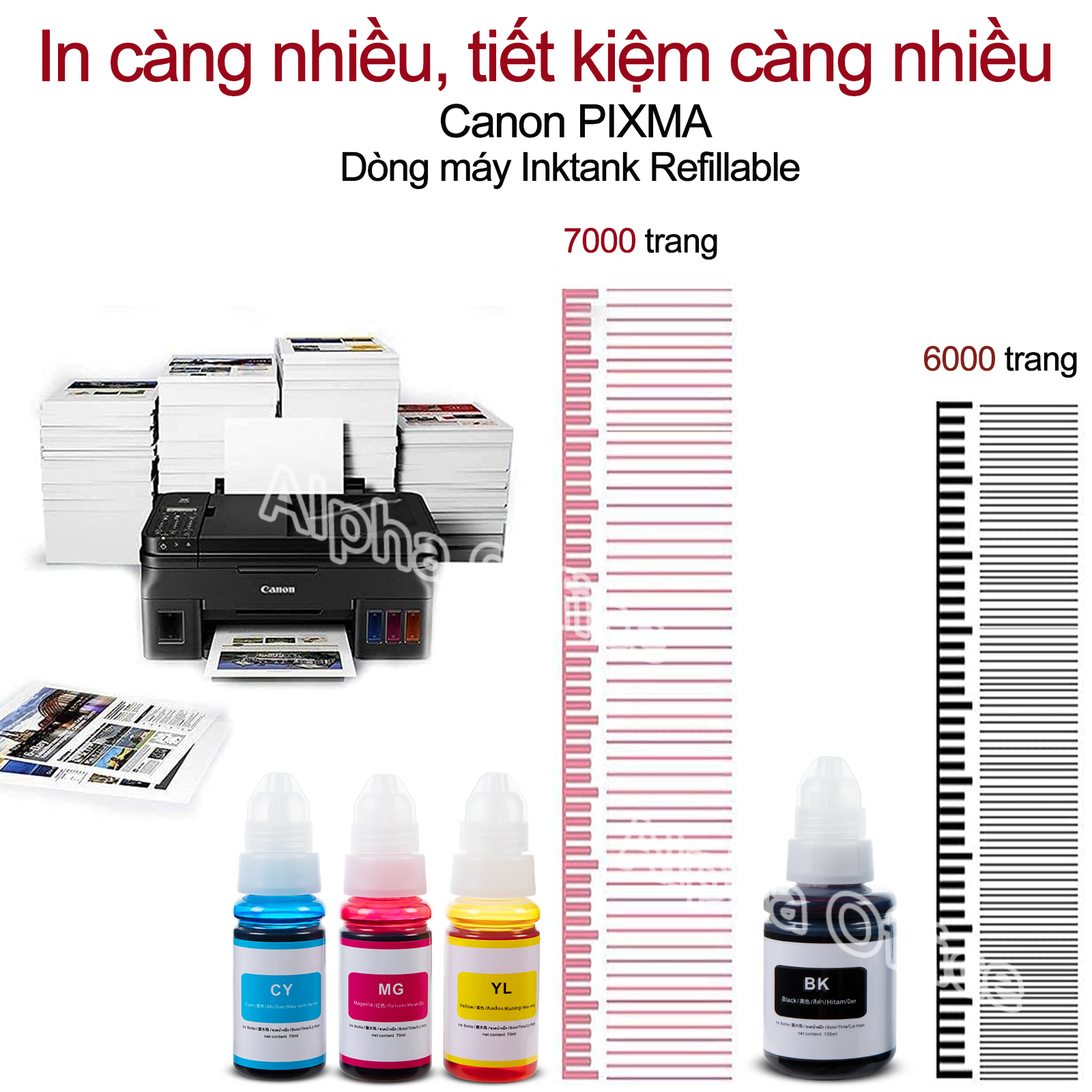 Máy in sử dụng : G1000 / G2000 / G3000 / G1010 / G4010 / G3010 / Canon G1000/g2000/1010/2010/g3000/4000