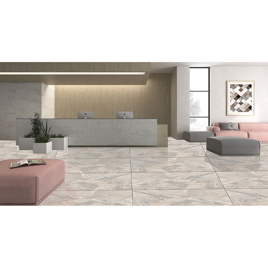 - Loại gạch lát nền này có màu nền be cùng các vân đá màu xám khói và kem sữa tạo nên một tone màu tổng thể ấm áp giúp giữ không gian sinh hoạt luôn ấm cúng và thư giãn. Bên cạnh đó, đây là một tone màu trung tính giúp người thiết kế nội thất dễ dàng phối với nhiều vật dụng màu sáng, tối và nóng, lạnh khác nhau. Do đó, loại gạch này phù hợp để ốp tường hoặc lát sàn tại các công trình trang trọng như văn phòng, trung tâm thương mại, cơ quan hành chính,