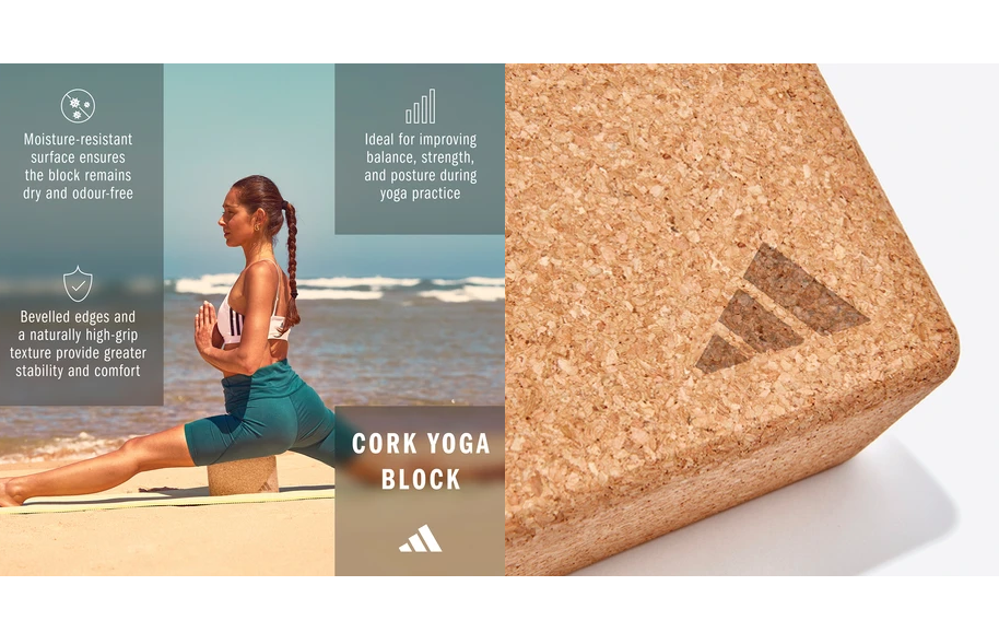 Gạch yoga ADIDAS CORK thiết kế cạnh vát và kết cấu tinh tế để mang lại cảm giác cầm nắm chắc chắn và độ bền cao.