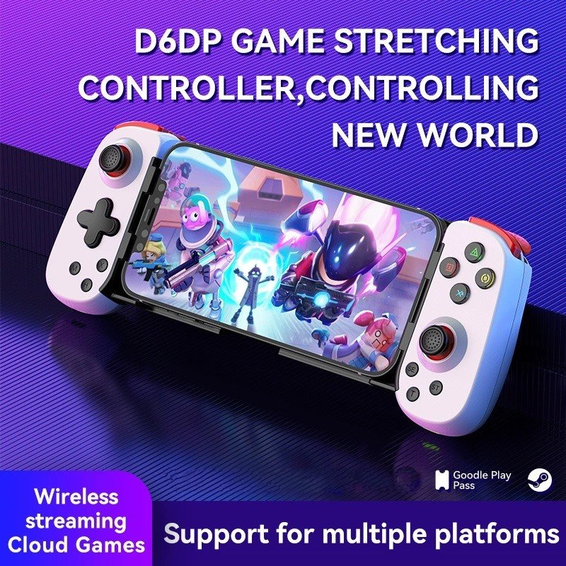 . Gamepad Tay Game Không dây Bluetooth D6 đa nền tảng cho máy tính - điện thoại - máy game Console . Kết nối : Bluetooth hoặc cắm dây USB trực tiếp . Nguồn : Pin sạc Lithium Cổng sạc TypeC . Trọn Bộ bao gồm Gamepad + Dây sạc TypeC . Cần điều khiển