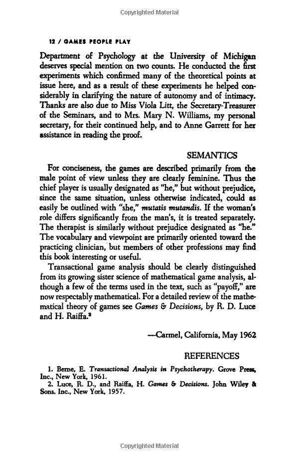 Do you realise you, and all the people you know, play games? All the time? Sexual games, marital games, complex games that you're not even aware of as you go about your usual life? You