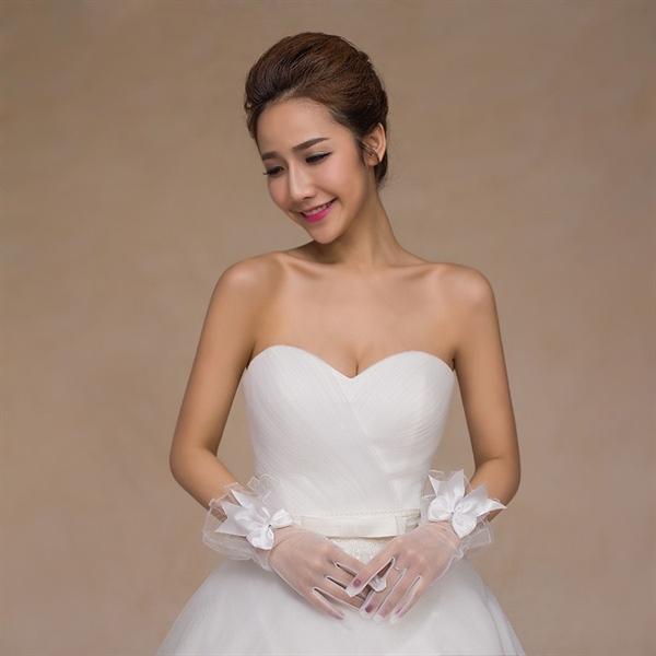 Găng tay ngắn: Lựa chọn hoàn hảo cho những cô dâu thích phong cách trẻ trung, nhẹ nhàng. Găng tay ngắn dễ dàng kết hợp với váy cưới ngắn hoặc kiểu dáng tối giản nhưng không kém phần quyến rũ.