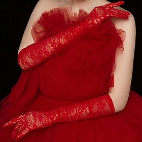 ✨Găng tay ren hoa dáng dài màu đỏ cho Cô dâu và Dạ hội, đi tiệc, sự kiện MS: 42222