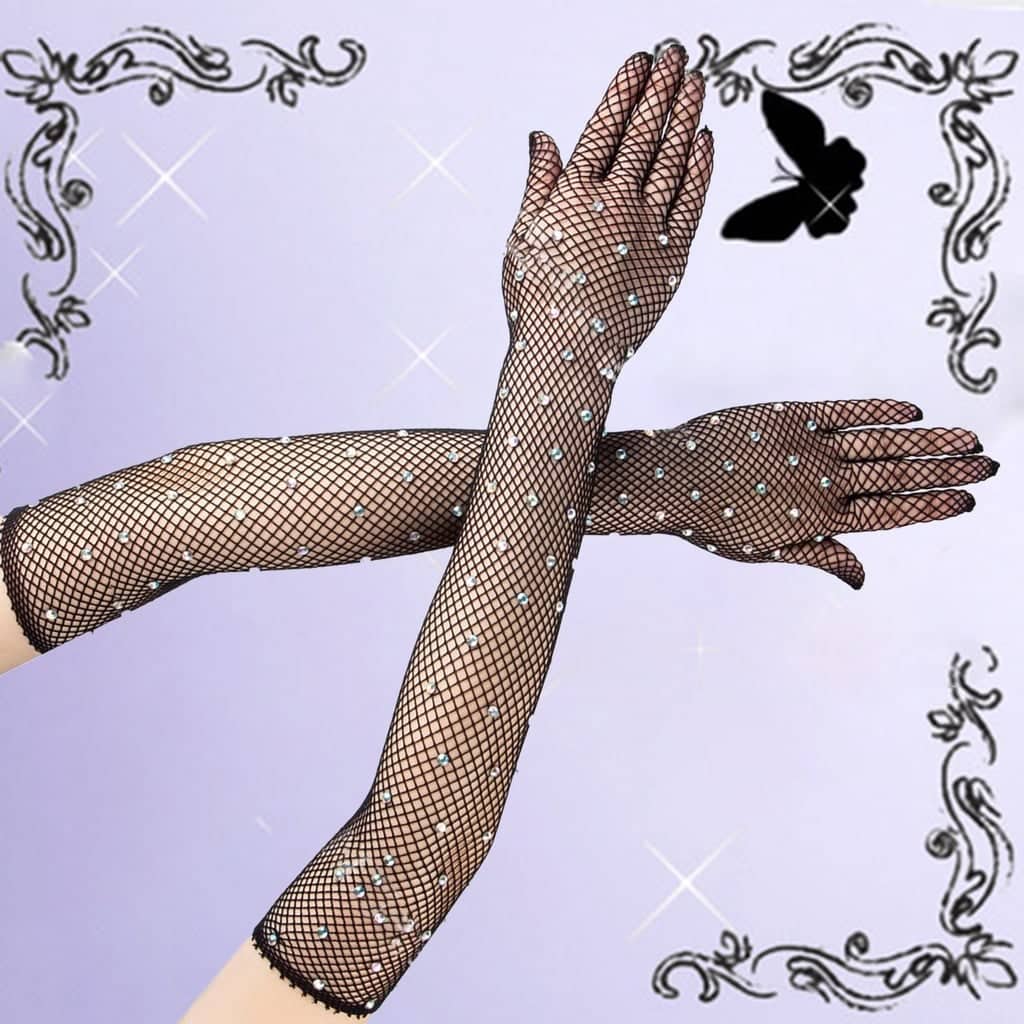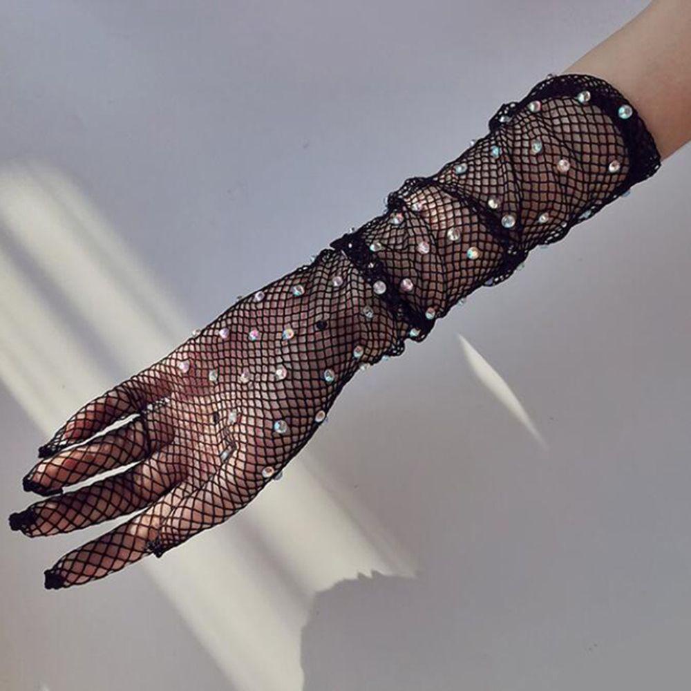 ✨Găng tay sang chảnh màu đen dạng lưới đính đá lấp lánh cho Cô dâu và Dạ hội, đi tiệc, sự kiện, lễ hội MS: 42951