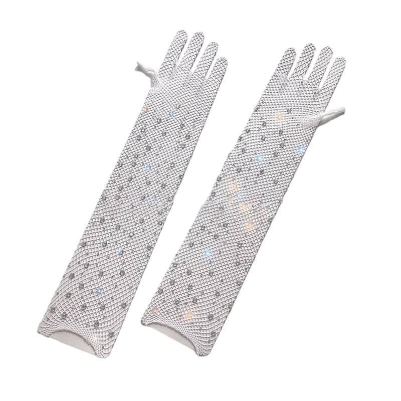 ✨Găng tay sang chảnh màu trắng dạng lưới đính đá lấp lánh cho Cô dâu và Dạ hội, đi tiệc, sự kiện, lễ hội MS: 44146