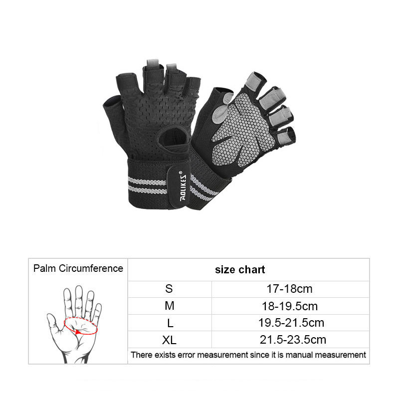 Găng Tay Nửa Ngón Tập Gym, Tập Tạ Tích Hợp Quấn Cổ Tay Aolikes AL113B 113 AL113 (1 đôi) - Chính Hãng Aolikes ---- BẢNG SIZE TRONG PHẦN HÌNH ẢNH ----- - Cách chọn size