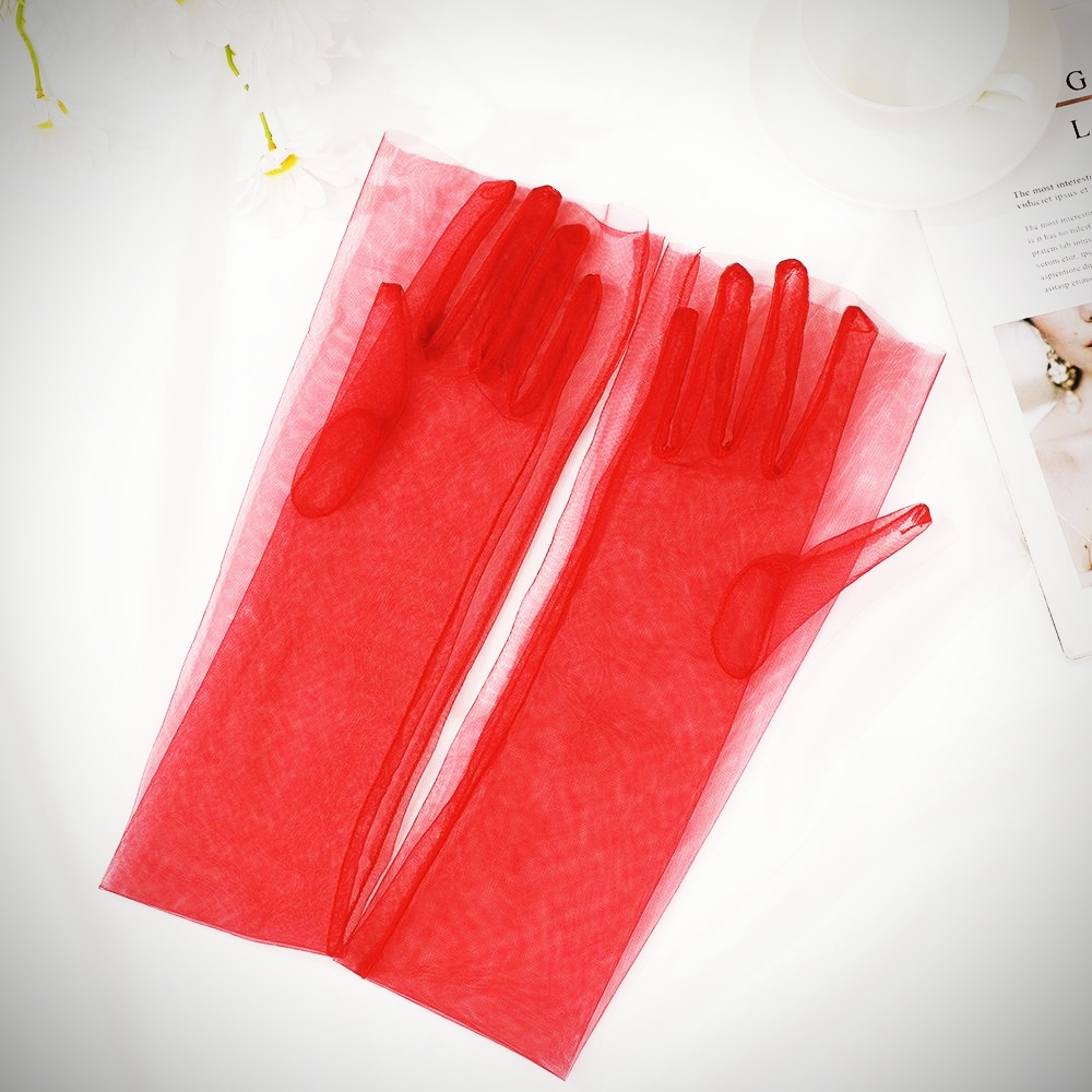 ✨Găng tay vải tuyn trong suốt thời trang màu đỏ cho Cô dâu và Dạ hội, đi tiệc, sự kiện, lễ hội, chụp ảnh MS: 43025