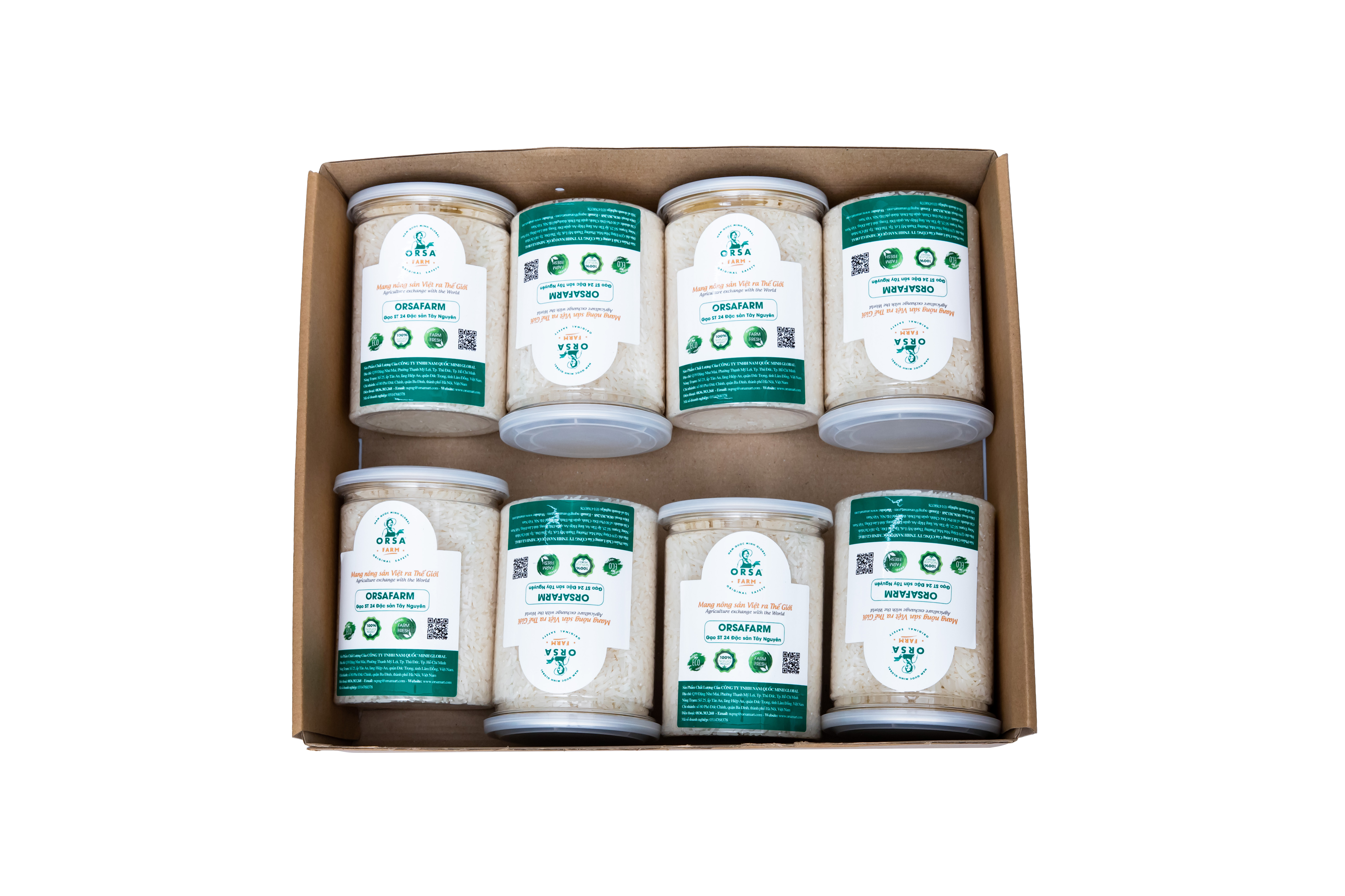 Với sản phẩm tươi sống, trọng lượng thực tế có thể chênh lệch khoảng 10%. Gạo Đặc Sản OrSaFarm Tây Nguyên Buôn Choah Vietgap  Gạo ST 24 OrSaFarm Tây Nguyên Buôn Choah Vietgap (Art 30030316 - Barcode 8936200500021 )   Gạo ST24 OrSaFarm Buôn Choah thuộc loại gạo ST24 được công nhận “Ngon nhất thế giới 2019” (theo World's Best Rice 2019).   Lúa OrSaFarm buôn Choah được trồng trên vùng đất núi lửa Bazan đầy dưỡng chất, vùng núi lửa với đất tổ ong hiếm có giữ độ ẩm, giữ được dưỡng chất và dưỡng vi sinh có ích cho đất, đất tổ ong núi lửa cũng giúp lọc sạch nước một cách tự nhiên và giữ nước cho cây lúa mọc thẳng, hạt lúa cúi đầu siêu sản vàng ươm. Đa số nông dân tham gia trồng lúa Orsafarm là người dân tộc thiểu số chăm chỉ và hiền hậu. The OrsaFarm Buon Choah Rice is grown in nutrient-rich basalt volcanic soils with rare honeycomb formations that retain moisture, keeping nutrients, and beneficial microorganisms in the soil, which also naturely purifies the water. This makes the OrsaFarm rice grow strong and healthy with a large head of Super Golden Grain. The Rade rice farmers in the Vietnamese Highlands who grow Orsafarm Buon Choah Rice are very kind and hardworking people.   Products of Nam Quoc Minh Global Company   Buôn Choah nằm ven sông Krông Nô, thuộc tỉnh Đắk Nông. Vùng đất trên nền núi lửa thuộc khu vực Tây Nguyên – nơi có đầy nắng và gió, nhưng thời tiết lại mát mẻ quanh năm. Vì đây là vùng đất núi lửa Bazan nên đất thích hợp để làm nông nghiệp do chứa nhiều dưỡng chất được hình thành qua nhiều năm. Kết hợp thời tiết ôn hòa tạ ra môi trường thuận lợi  để canh tác các loại giống lúa mới. Buôn Choah biến vùng đất núi lửa Công Viên Địa Chất Toàn Cầu thành vựa lúa an toàn của Tây Nguyên. Buon Choah is located along the Krong No river, in Dak Nong province in the Central Highlands it’s weather is sunny and windy, but cool all year round. Because this is a basalt volcanic land, the soil is suitable for agriculture because it contains many nutrients formed over the years. Combining mild weather creates a favorable environment for the cultivation of new rice varieties. Buon Choah turns the volcanic land of Global Geopark into a safe rice granary of the Central Highlands.