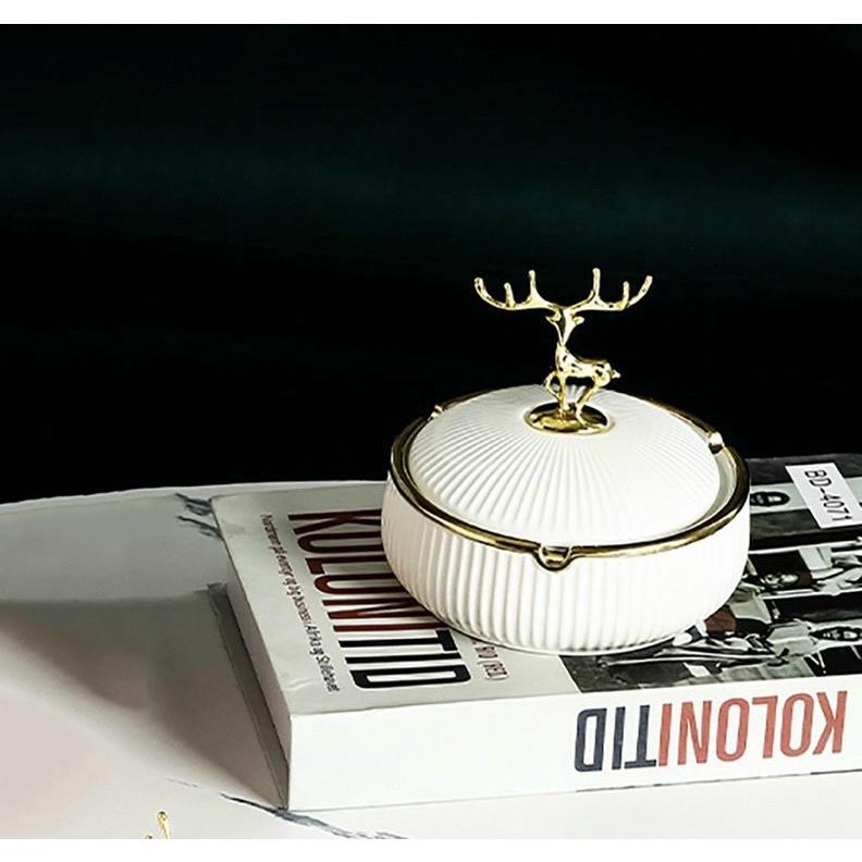 ✨GẠT TÀN BẰNG SỨ CAO CẤP NẮP HÌNH ĐẦU HƯƠU VÀNG SANG TRỌNG