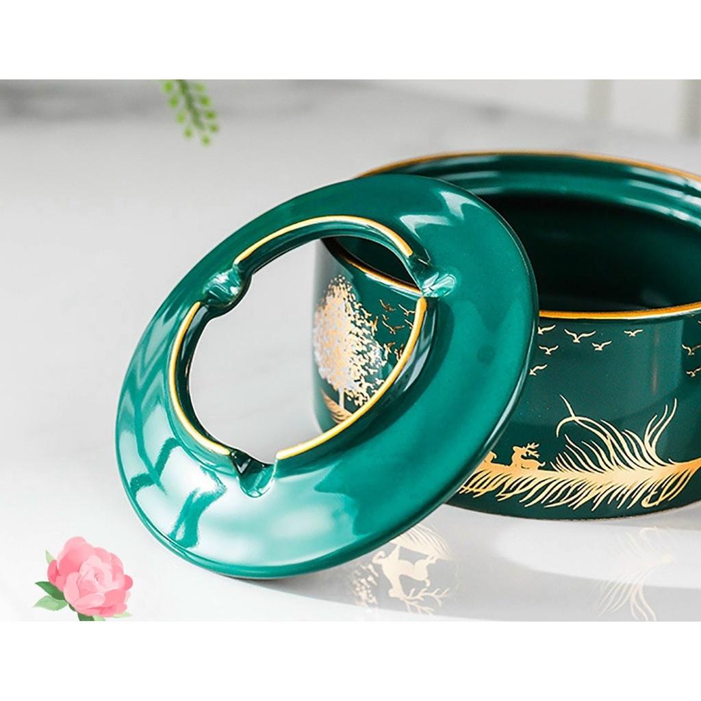 ✨GẠT TÀN BẰNG SỨ TRÒN NẮP GÁC RỜI MÀU XANH CỔ VỊT RẠN VÀNG