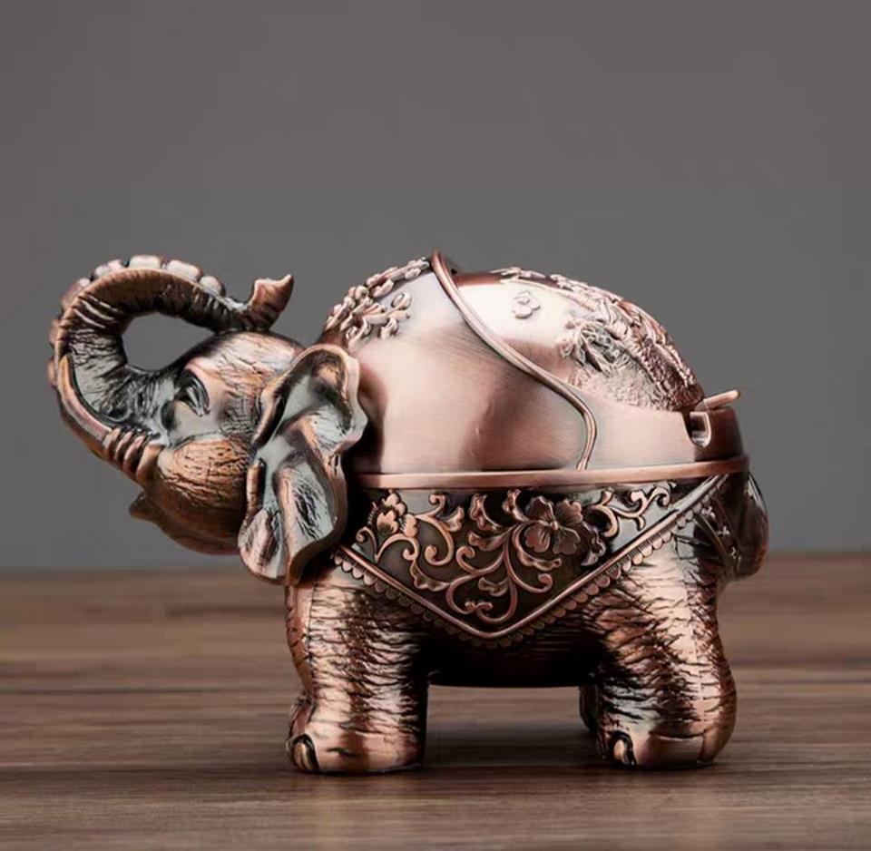 Gạt tàn thuốc lá hình tượng Voi cổ có nắp kéo đậy kín độc đáo GTT117 | Quang Duy Plasma