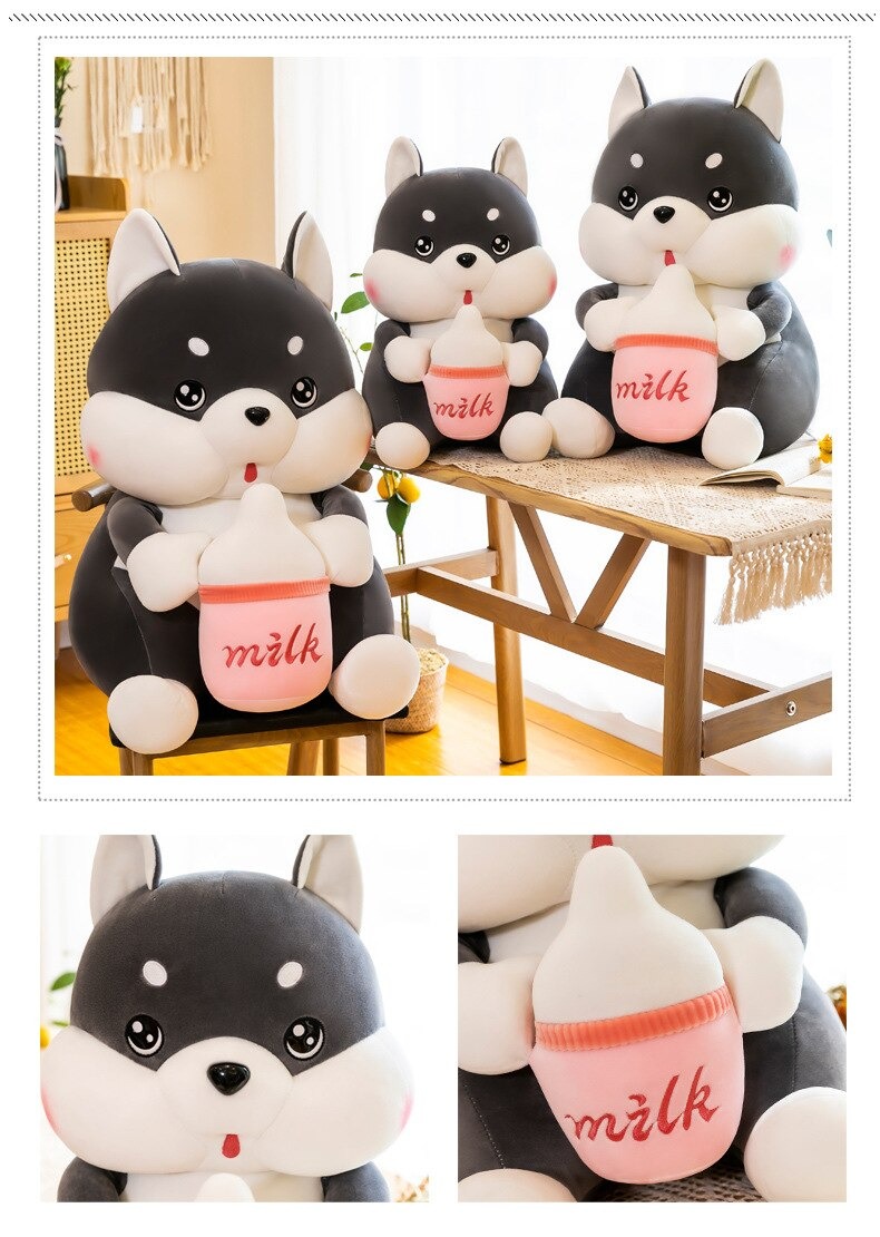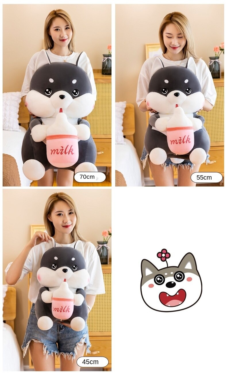 Gấu bông chó Husky ôm bình sữa siêu dễ thương – Quà tặng thú nhồi bông chó má phệ bú bình – Size từ 40 cm đến 80 cm – Gối ôm chó Husky milk cho