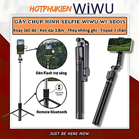 ✨Gậy chụp ảnh selfie tự sướng kiêm tripod 3 chân, đèn Flash trợ sáng hiệu WlWU Wi-SEO15 - Tích hợp remote control bluetooth, Xoay 360 độ, thân nhôm, kéo dài 1,8m, chắc chắn, bền bỉ, gập gọn, pin sạc type C cho iPhone Oppo Samsung - Hàng nhập khẩu
