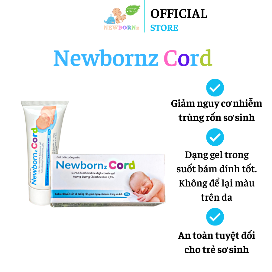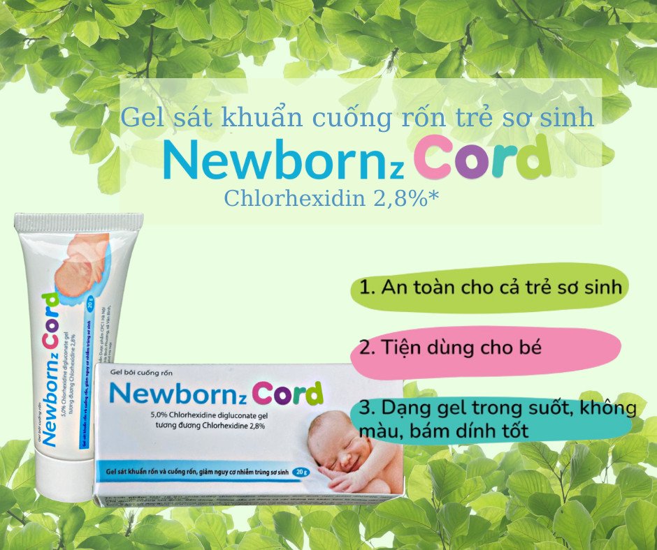 Newborn Cord là gel bôi sát khuẩn cuống rốn cho bé chứa Chlorhexidin Digluconate, với nhiều ưu điểm vượt trội: