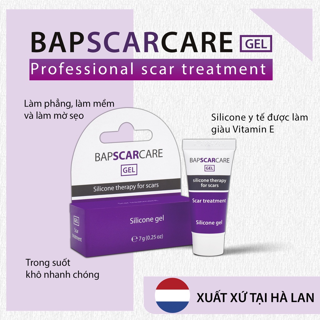 - Kem xóa sẹo Bapscarcare là gel silicone y tế thế hệ mới được thiết kế để làm mờvà ngăn ngừa sẹo mới và cũ do phẫu thuật y khoa, thẩm mỹ, vết thương, chấn thương hoặc bỏng.