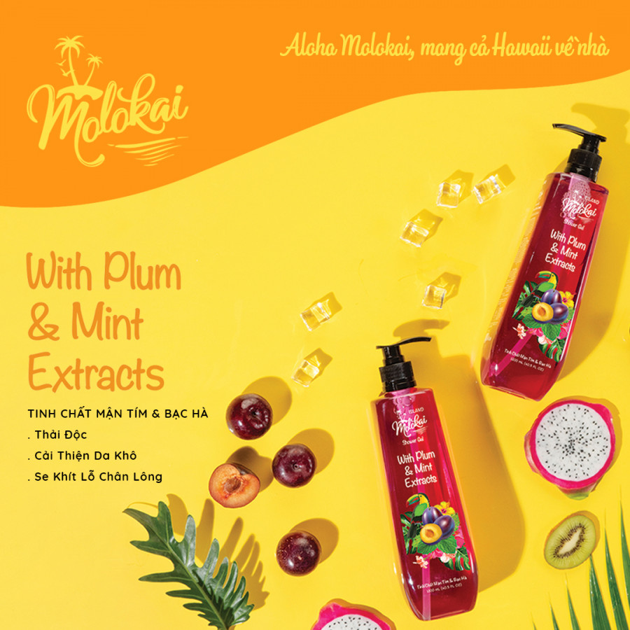 Với chiết xuất từ tinh chất thiên nhiên, dòng gel tắm Molokai là sản phẩm vệ sinh cơ thể an toàn cho mọi làn da, mang lại một làn da khoẻ đẹp tự nhiên. Những mùi hương trung tính của Molokai phù hợp với mọi thành viên trong gia đình. Và sẽ vô cùng tiện lợi với dung tích lớn lên đến 1200ml, cả gia đình có thể cùng dùng 1 chai gel tắm Molokai liên tục trong 2-3 tháng.